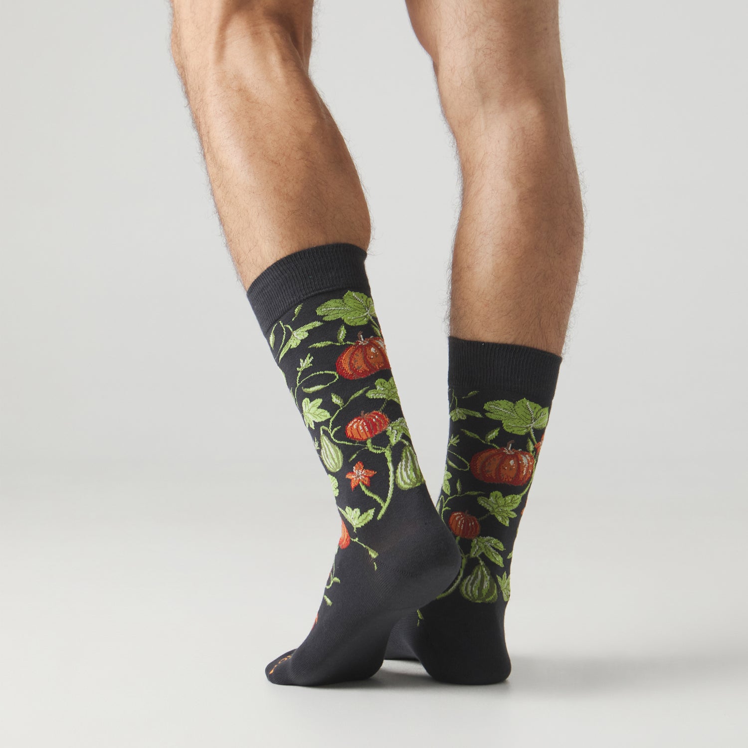 Déjate envolver por el encanto del diseño Pumpkins, un diseño de calcetines que celebra la calidez de las calabazas. Sobre un fondo oscuro, los tonos naranjas y verdes resaltan con fuerza, creando un contraste elegante y lleno de carácter. Perfectos para aportar profundidad, estilo y un punto único a cualquier outfit.